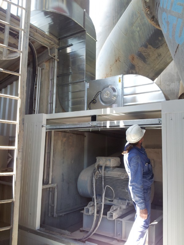 - Schallschutzeinhausung einer Antriebseinheit mit Mineralwollkern Paneelen mit Akustiklochung. Zusätzliche