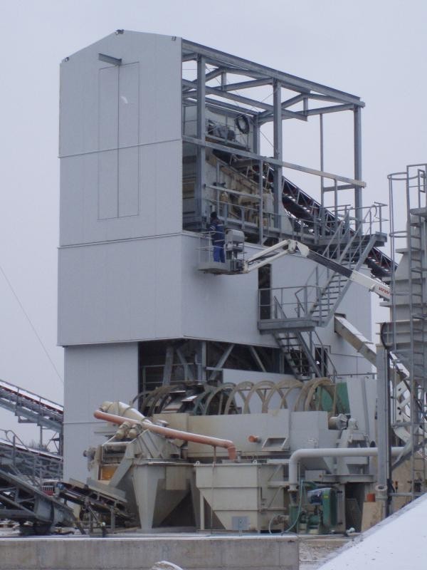 - Einhausung einer Kiesaufbereitungsanlage mit IPN-Dämmkern Paneelen